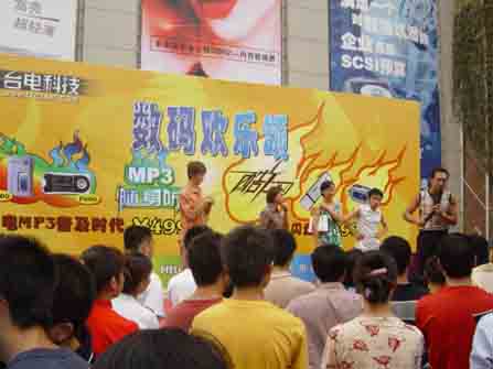 今天上午,在太平洋大廈門前北京商科公司正在舉行題為“數碼歡樂頌”的大型路演。