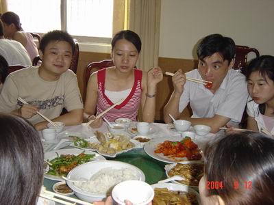 結(jié)束了路途的奔波,大伙兒該好好飽餐了。其實(shí)真不是這魚這肉好吃得不得了呀,只是此清遠(yuǎn)一漂,TMD說不準(zhǔn)就漂到何方做了美人魚,有得吃就多吃點(diǎn)吧,可以笑的時(shí)候就盡量逼真吧,日后的事......哎!兄弟姐妹們,開動吧!