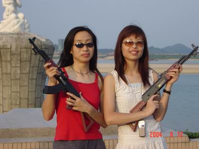是驚訝?是驚奇?還是驚嚇?原來商科的MM戴上墨鏡,挎上個(gè)塑料槍,擺個(gè)酷POSE也可以這樣的!如果來個(gè)AK-47后果會怎樣~~~