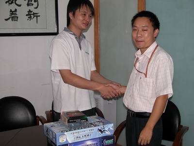 2004年9月27日,也是中秋的前夕,百年奧運競猜活動的重磅人物--特等獎得主曹而先生終于亮相商科集團,領(lǐng)走了他的頭等大獎(碩泰克K8+銘瑄5700ultra+AMD Athlon64 3000+cpu)一共價值現(xiàn)金5000元。