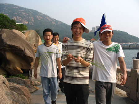歡呼聲中我們踏上了十一之旅,來到富有豐富人文、歷史景觀的外伶仃島,外伶仃島離香港長洲島只有6海里,主峰伶仃峰高達311.8米,是萬山群島最高峰。站在伶仃峰可清楚的觀望香港的景色(如太平山、青馬大橋等香江景物)。天氣晴朗不起霧的時侯,清晨在山頂等候太陽從大海的地平線上跳出,冉冉升起,整個洋面一片金黃,霞光萬丈,美不勝收,真是一大奇景可惜我們這次沒有看到此景!!。×尕暄笊献钣杏绊,千古傳誦的是文天祥“人生自古誰無死、留取丹心照汗青”這一千古絕唱。這是毛澤東主席生前手書的文天祥《過伶仃洋》詩的石刻。