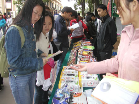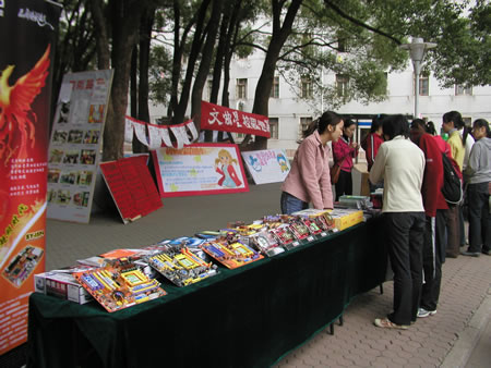 10月22日上午,武漢分公司來到華中師范大學。九點半,已經有不少商家開始布置展臺了,我們也趕緊將產品一一擺放出來。