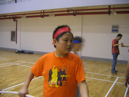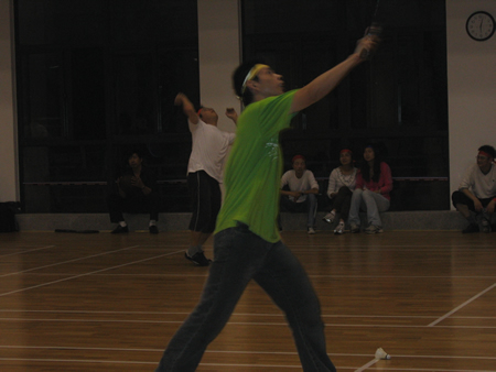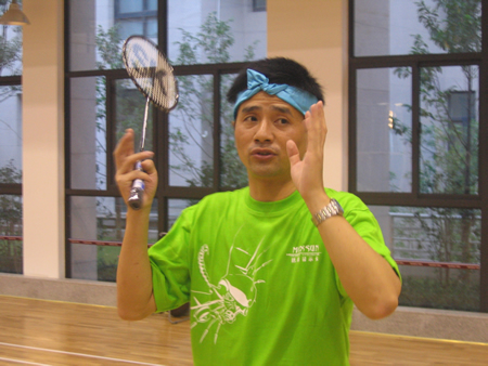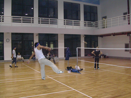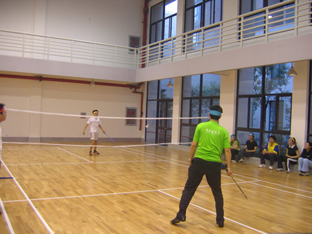 <圖4>首先進行的是羽毛球比賽,孫經理VS張翼。大家仔細看看,這可是右手與左手的對絕哦!