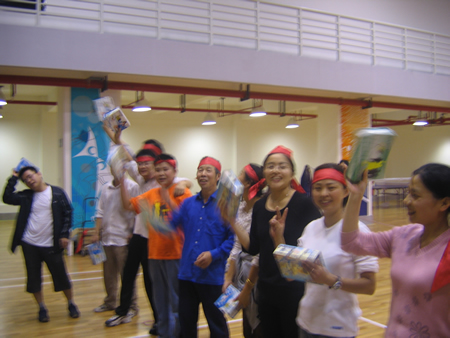 <圖14>經過一番激烈的角逐,下面開始了我們的頒獎程序,首先請上鏡的是我們的季軍得主,他們的獎品是名牌洗發水每人一瓶