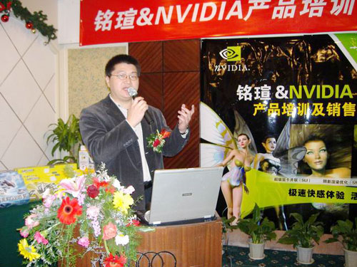 緊接著NVIDIA中國區銷售經理侯宇濤先生對NVIDIA的成長歷程,先進的顯示技術,產品的市場走勢做了詳細介紹。特別對今年nVIDIA“三重威力”所包涵的最新顯卡技術作了重點講解,陰影渲染優化(SM3.0)、高精度動態渲染(HDR)和超級顯卡并聯(SLI)已經在Geforce6及其以上的顯卡中得到了完美展現,成為了NVIDIA今年快速成長的助推器,對于2005年度銘瑄攜手NVIDIA在市場推廣方面所作的努力表示肯定,并對雙方繼續加強合作表示了積極展望。