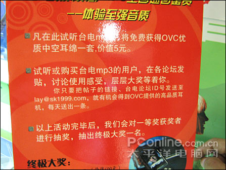 活動的詳細情況就在這里了,下面沒拍到的大獎是臺電T19 MP3一臺
