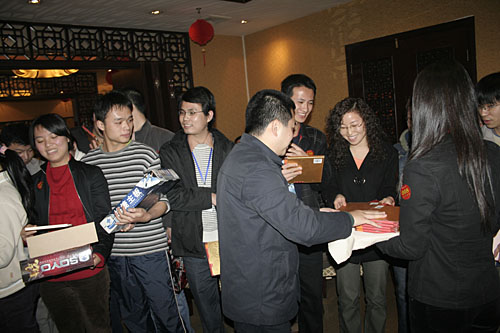 之后,晚會進(jìn)行了一個特別的節(jié)目,主持人邀請全體屬相是豬的同仁上臺,領(lǐng)取一份特別的祝福和禮物。商科劉總宣布:“這將成為商科的每年的一個慣例,希望同事們能夠拿到第三個、第四個這樣的禮物。”