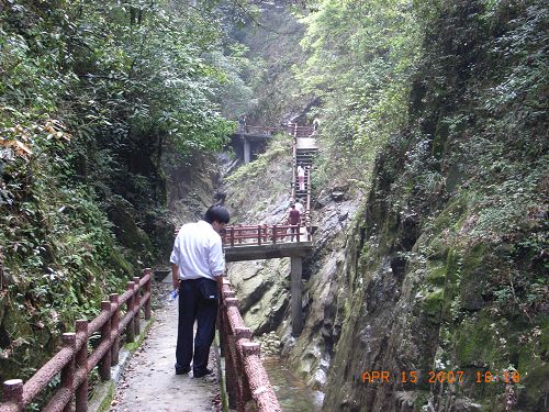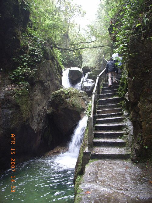 首先是游覽瀑布群:千米瀑、孔雀瀑、飛流瀑、驚心瀑、虎口瀑、清心瀑、音韻瀑及雙飛瀑等穿8條形態各異的瀑布。