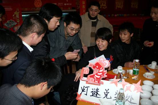 先到場的工作人員早已經(jīng)為大家準備好了燈謎競猜活動。在晚會開始之前,先到的同事和領(lǐng)導(dǎo)們興致勃勃的加入燈謎活動之中。