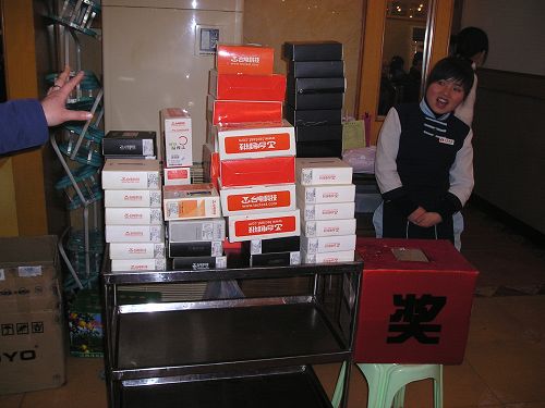 先來看看我們堆的和小山一樣的獎(jiǎng)品,夠豐盛吧