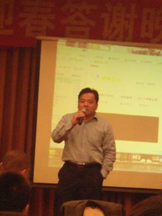首先是總經(jīng)理孫武源先生的致辭。回顧2008,展望2009,他表示09年是一個(gè)機(jī)遇和挑戰(zhàn)并存的一年,在09年,商科要把步伐邁的更大.更穩(wěn)一些,利用現(xiàn)在的大環(huán)境,牢牢的把握這個(gè)機(jī)會(huì),從逆鏡中擴(kuò)大公司在行業(yè)的影響力,以最好的支持為合作伙伴服務(wù)!!