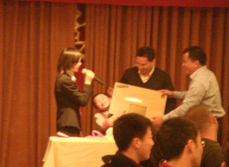 當(dāng)然不只有蛋糕,禮物早準(zhǔn)備好了,由副總經(jīng)理劉險(xiǎn)峰先生為陳總送上賀禮,19寸液晶顯示器一臺(tái)。