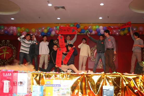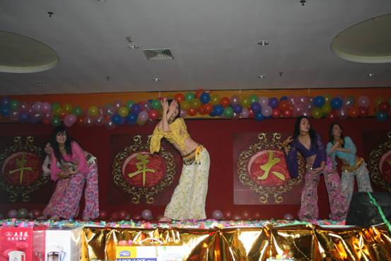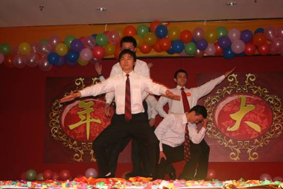 頒獎活動結束后,迎春晚會正式開始。首先是公司美女們的舞蹈節目,為了排練這個節目,公司的姐妹們連續幾晚都自發留在公司里辛苦演練。
