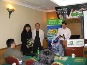 另外楊成先生還抽出本次培訓會的第一個大獎, 銘瑄9500GT高清版顯卡一片, NV精美腰包一個。