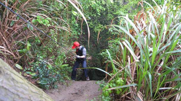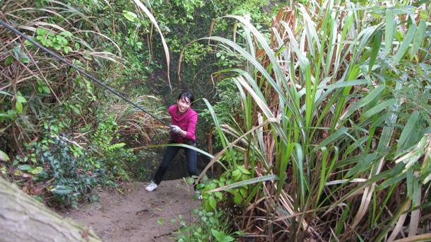 在山上經(jīng)過簡短的休整,我們繼續(xù)挑戰(zhàn)臥龍洞。這是一個半開放狀態(tài)的崖洞,在水流湍急的地方架起了一些竹橋,大家還是非常自覺的互相幫助,只聽到洞里不斷傳來:“當心頭。。。這里滑。。。褲腳要卷高些,這里水急。。。當心。。!钡鹊鹊奶嵝崖。冰冷的泉水穿過腳踝,大家全濕了鞋,但心里的溫暖遠遠超過身體的溫度。
