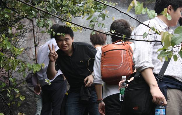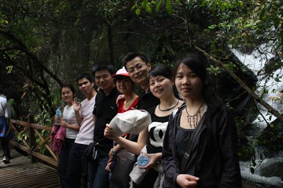 經過一番跋山涉水,大家終于爬到了白水寨的9999級(最高點哦!),大家撐起笑臉留下值得驕傲的表情。大家看看大汗淋漓、筋疲力盡的我們,是不是都很棒!(掌聲ING