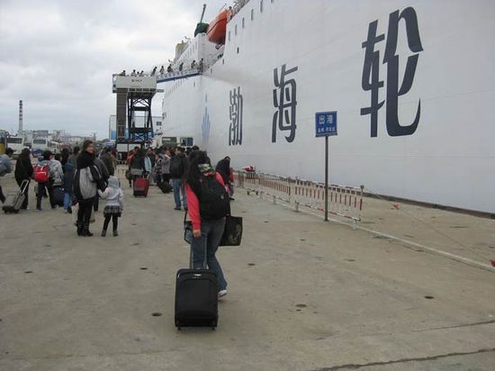 別具一格的有軌電車,據(jù)說是30年代一直沿用至今。(右上角黃色的招牌居然是“北京東來順”) 中午13:00登船離開大連。