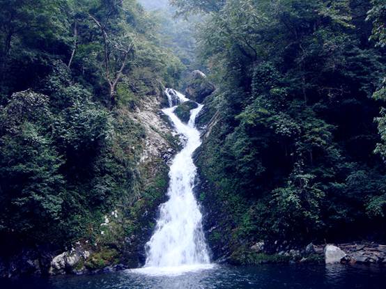 從黃洋界下山,我們來到了五龍潭瀑布群。