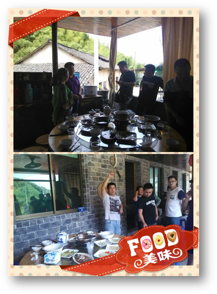 經過三個半小時的車程,中午時分,終于來到了第一天的目的地---龍王山峽谷漂流。當然啦,對于一群吃貨而言,漂流之前肯定得飽餐一頓啦,為此,我們選擇了當地附近的一家農家樂,吃上了健康的有機綠色食物。在安吉,竹筍是每家每戶每餐必不可少的一道菜,在旅途的這兩天中,我們每餐的竹筍都是不一樣的,做法吃法各式各樣,但頓頓都是極其美味,極受歡迎,LOOK,我們上分都是“光盤”一族哦,表揚表揚~~~