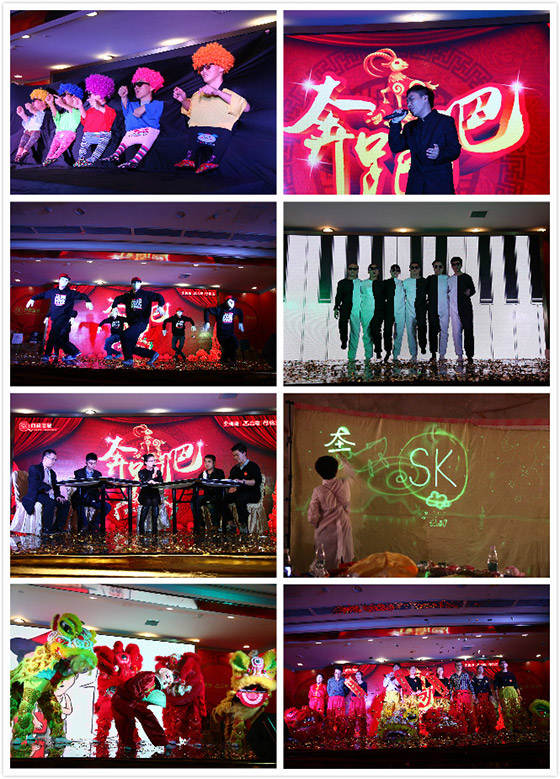 看完精彩的節(jié)目,天色已完全暗下來,大家已饑腸轆轆,酒店已經(jīng)開始端上可口的飯菜。晚宴開始前,孫總上臺為大家獻上新年的祝福,并攜同各部門經(jīng)理上臺為大家祝酒。祝酒結束,晚宴正式開始