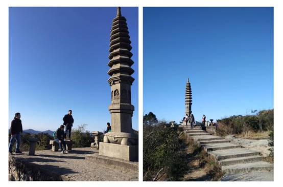 終于到達(dá)了第一個(gè)景點(diǎn),萬壽塔。雖說鋪了石板路,但是這一路過來山路蜿蜒曲折,七彎八拐的,就像我們的人生一樣, 想要得到成功,就必須要經(jīng)過重重的考驗(yàn)。