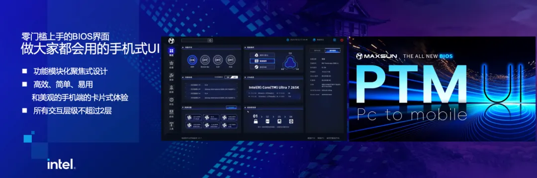 在會(huì)議上,銘瑄主板總經(jīng)理王榮還跟大家介紹了銘瑄全新的PTM UI BIOS。這款全新的BIOS達(dá)到了全方位的升級(jí),創(chuàng)新地洞察當(dāng)前移動(dòng)端對(duì)用戶瀏覽習(xí)慣的影響,采用PTM設(shè)計(jì)理念(PC To Mobile),將功能模塊化聚焦式設(shè)計(jì),所有交互層級(jí)不超過(guò)2層,解決了以往交互繁瑣的問(wèn)題,使BIOS體驗(yàn)兼具簡(jiǎn)潔、高效、易用,大幅提升交互感受。