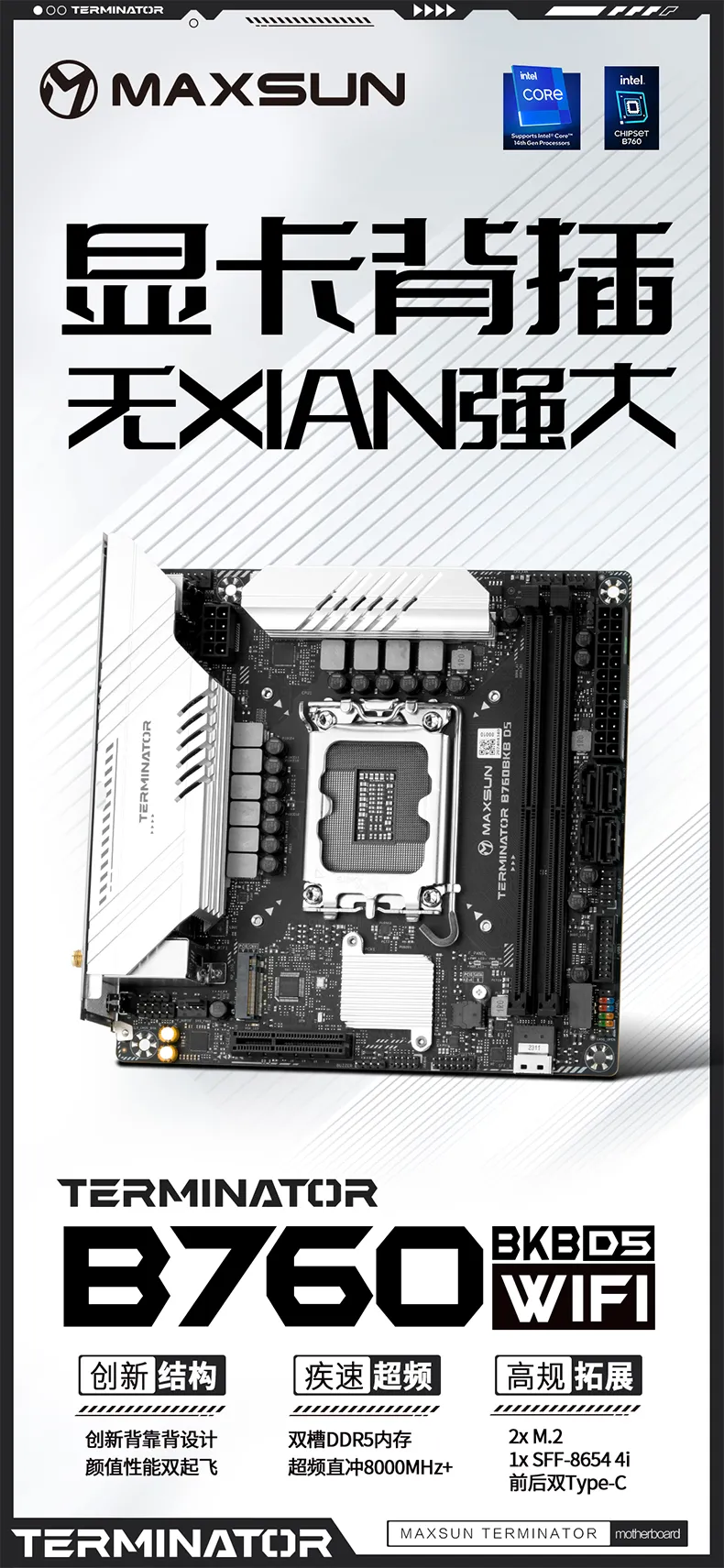 另一臺游戲主機則采用了MS-Terminator B760BKB D5 WIFI主板,重新定義ITX形式,主板和顯卡背靠背設計,無需轉接延長線,避免性能損失,節省價錢的同時,充分發揮顯卡性能,體積小、性能強、顏值高。