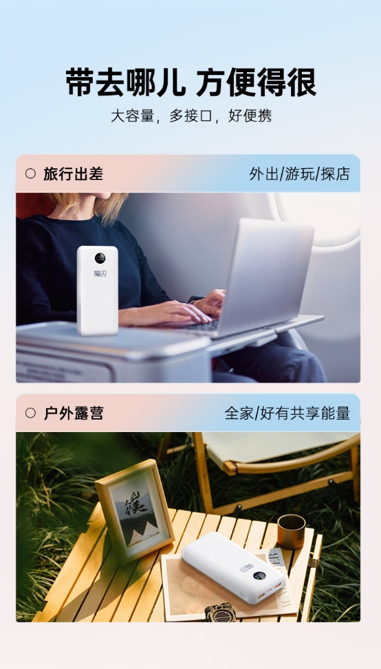 魔閃20充電寶的外觀設(shè)計同樣令人眼前一亮。采用了簡約時尚的外觀,輕巧便攜,無論是放在背包里還是口袋中,都不會給您帶來任何負擔。無論您是在機場候機、在咖啡館享受悠閑時光,還是在戶外探險,魔閃20都能完美融入您的生活場景。