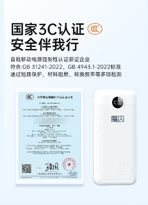 此外,魔閃20充電寶在安全性能上也毫不妥協(xié)。采用了先進的智能芯片,能夠?qū)崟r監(jiān)測充電狀態(tài),有效防止過充、過放、短路等問題的發(fā)生,更重要的是,通過了國家3C認證,確保您的設(shè)備和充電寶的安全。
