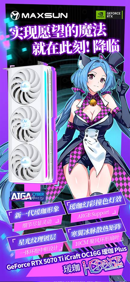 優(yōu)秀游戲的畫質(zhì)總是需要高性能的顯卡保證質(zhì)量。在此,我們推薦銘瑄GeForce RTX 5070 Ti iCraft OC16G 璦珈 Plus顯卡。