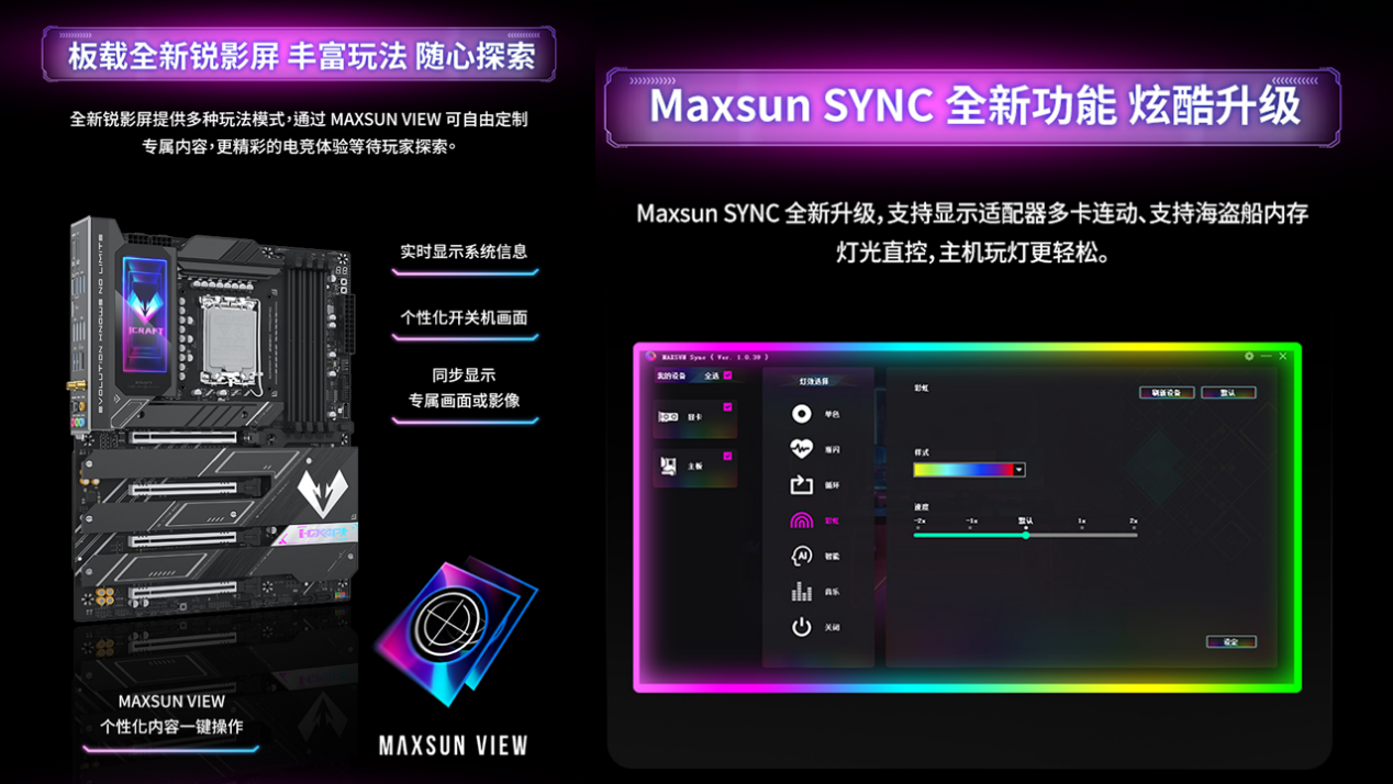 在功能設(shè)計上,銘瑄iCraft Z890 Pacific主板亮點滿滿。板載的全新銳影LED屏,能實時顯示CPU溫度、內(nèi)存頻率、供電狀態(tài)等核心參數(shù),更有多種玩法模式可選。激戰(zhàn)游戲時無需切換監(jiān)控軟件,就能直觀掌握硬件運行情況,實用性拉滿。還支持RGB光效同步,可與顯卡、內(nèi)存等外設(shè)實現(xiàn)燈光聯(lián)動,隨心切換炫酷燈光效果,無論是黑色電競主機(jī),還是純白海景房裝機(jī),都能完美適配,輕松打造氛圍感拉滿的裝機(jī)效果。